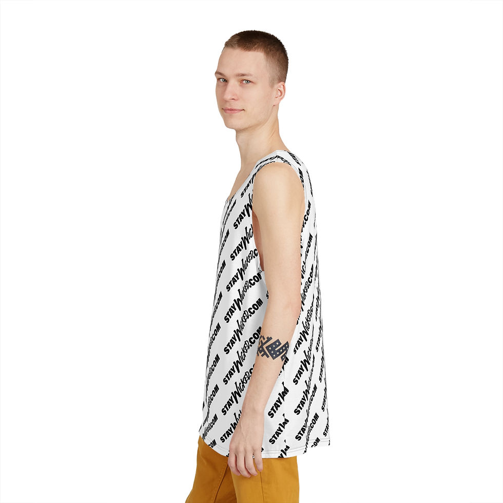 All-Over Print Men's Tank Top — Diagonal 'STAYWILDCO' Logo Pattern